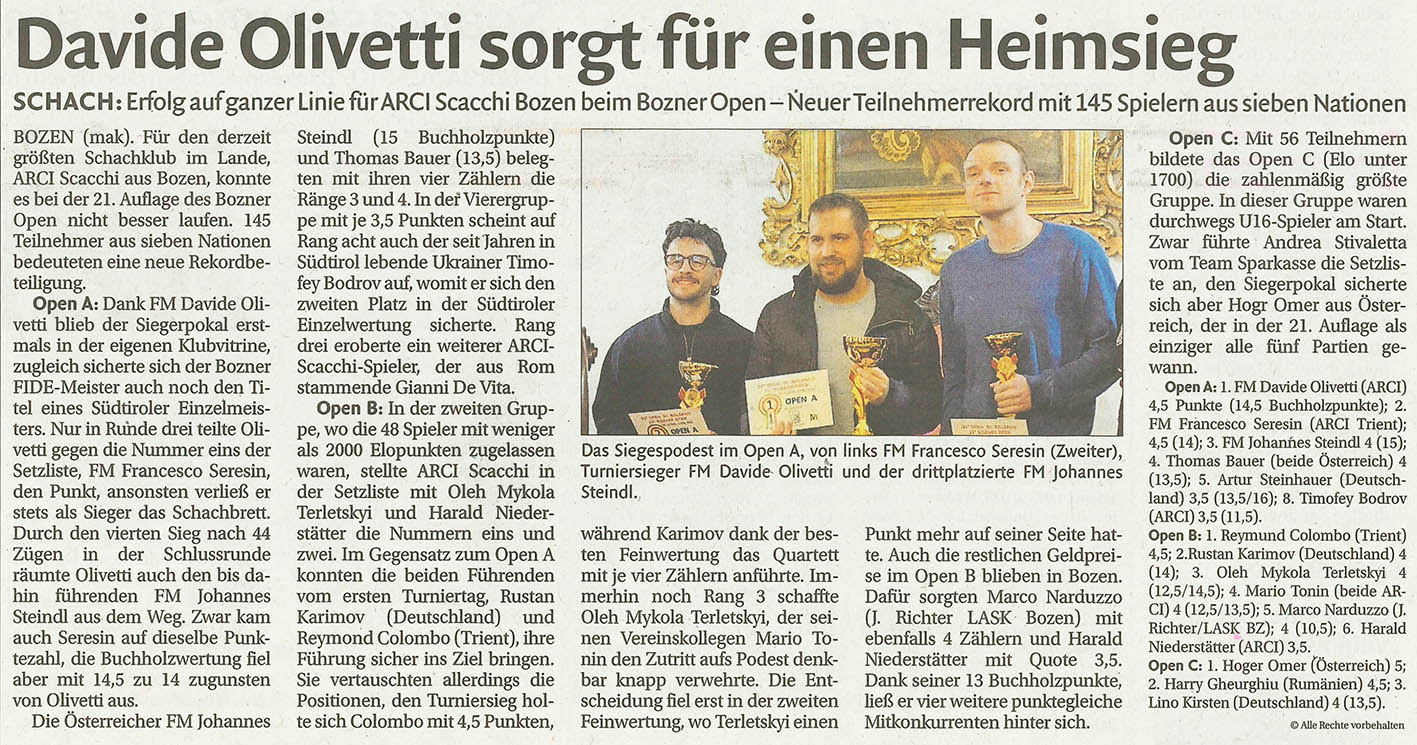 Lia Schach Gherdëina - Schachclub Gröden - Associazione Dilettantistica Scacchi Gardena