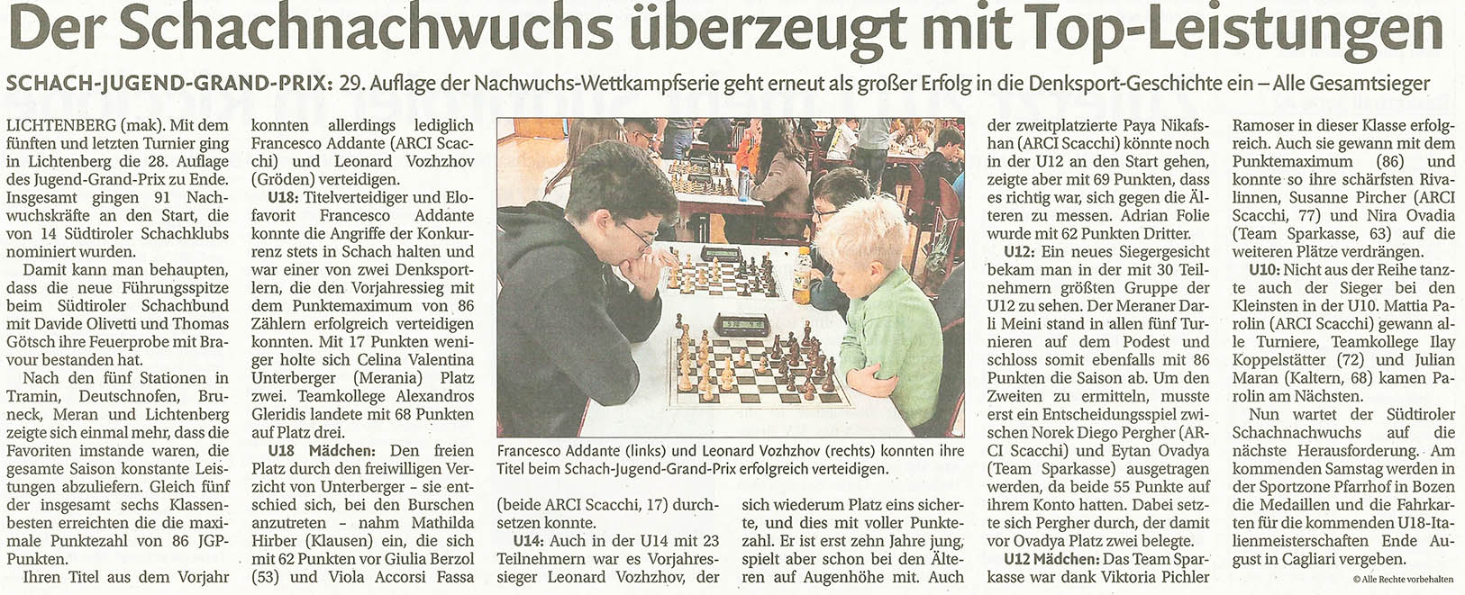Lia Schach Gherdëina - Schachclub Gröden - Associazione Dilettantistica Scacchi Gardena
