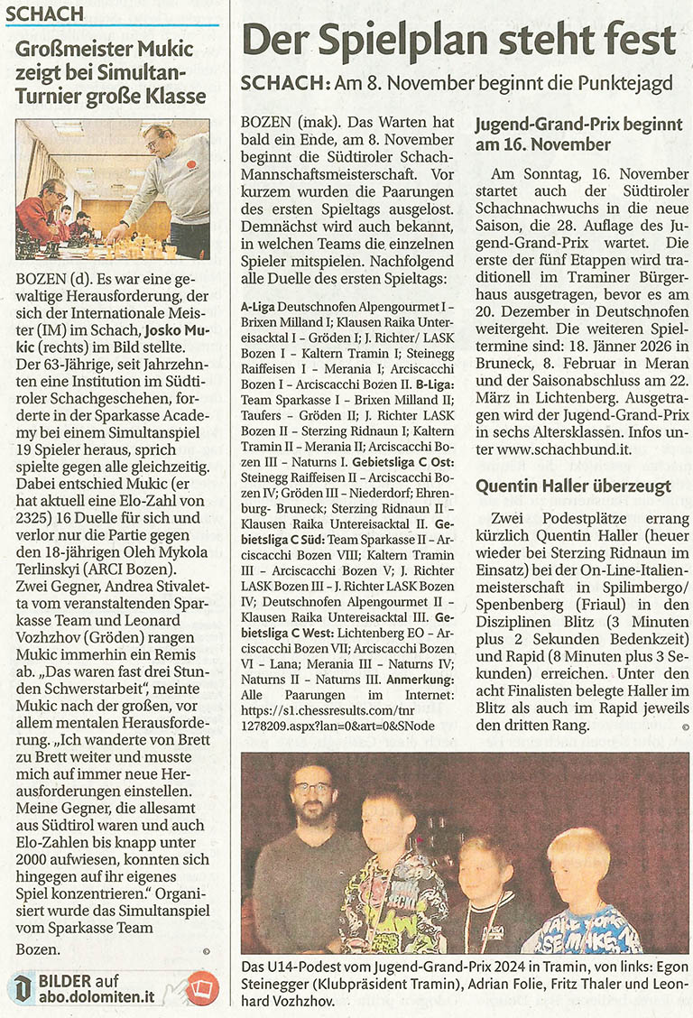 Lia Schach Gherdëina - Schachclub Gröden - Associazione Dilettantistica Scacchi Gardena