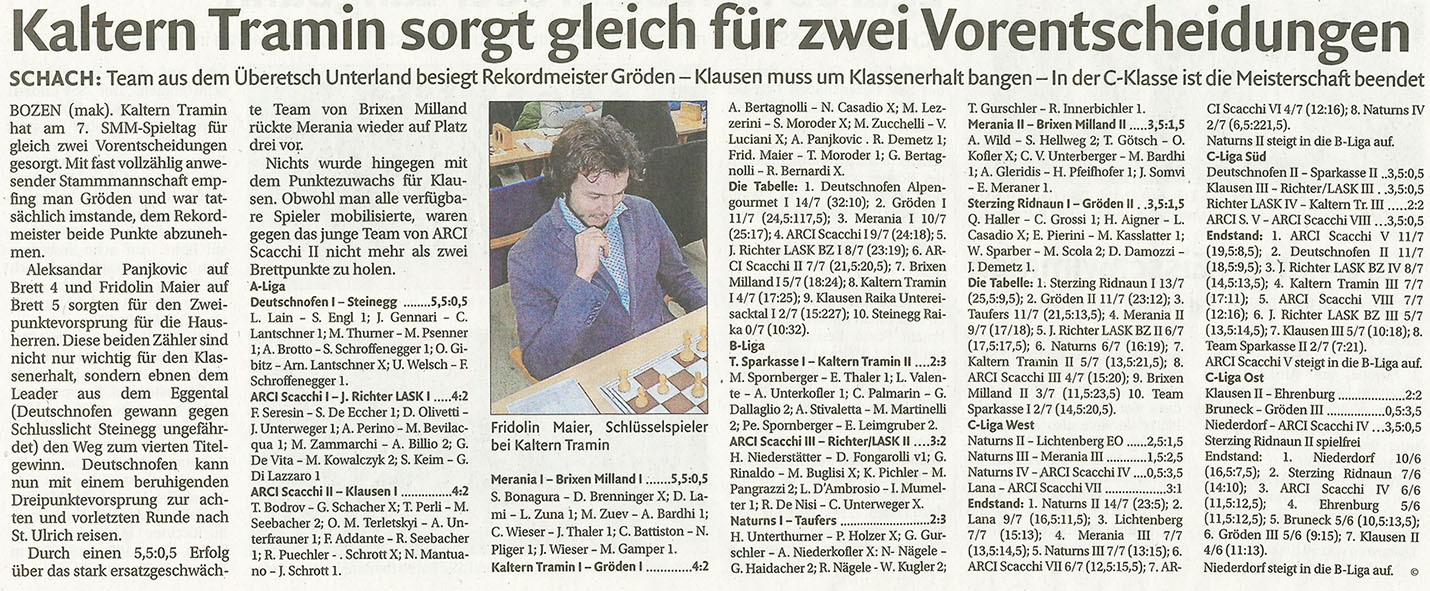 Lia Schach Gherdëina - Schachclub Gröden - Associazione Dilettantistica Scacchi Gardena