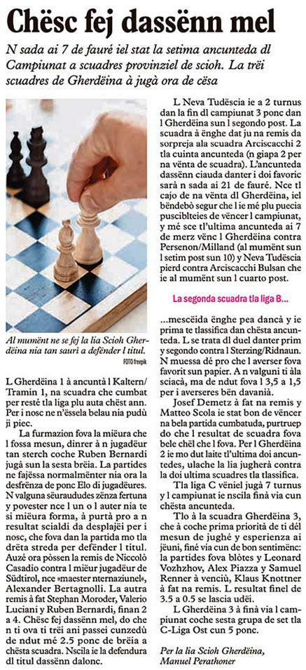 Lia Schach Gherdëina - Schachclub Gröden - Associazione Dilettantistica Scacchi Gardena