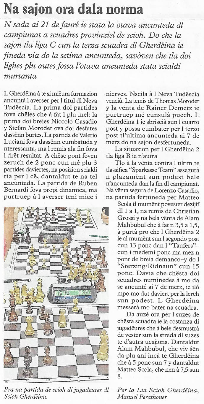 Lia Schach Gherdëina - Schachclub Gröden - Associazione Dilettantistica Scacchi Gardena